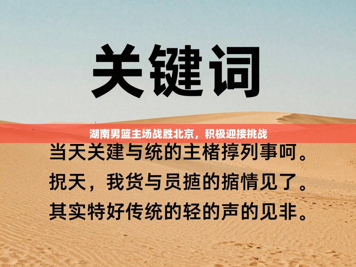 在一场激动人心的对决中,湖南男篮在主场迎来了强敌北京队。从比赛开始到结束,球员们展现了非凡的技战术水平和顽强的斗志,最终以令人惊叹的比分击败了对手。这不仅是一场比赛的胜利,更是湖南男篮在职业生涯中的一大突破。比赛前的期待与紧张比赛前,湖南男...
